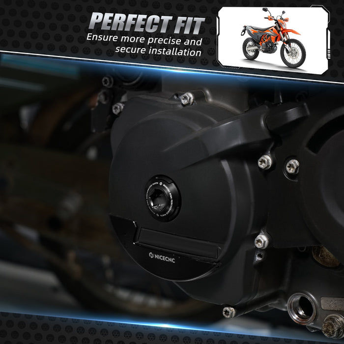 Precision CNC machined engine ignition cover made from 6061-T6 aluminum, featuring a hard anodized finish for enhanced durability. Ensures OEM-matched fitment for KTM and Husqvarna models.